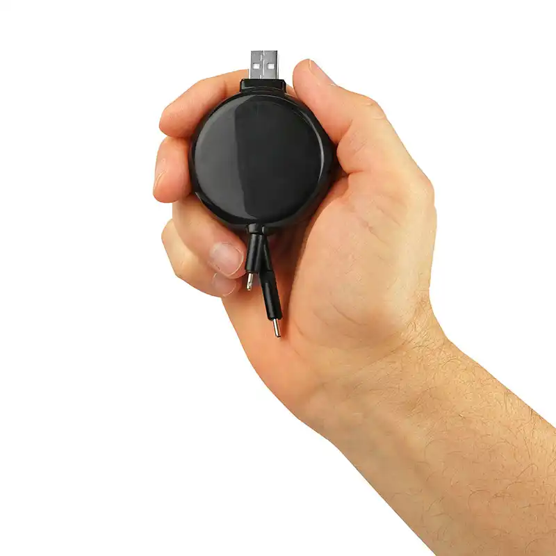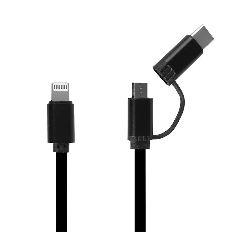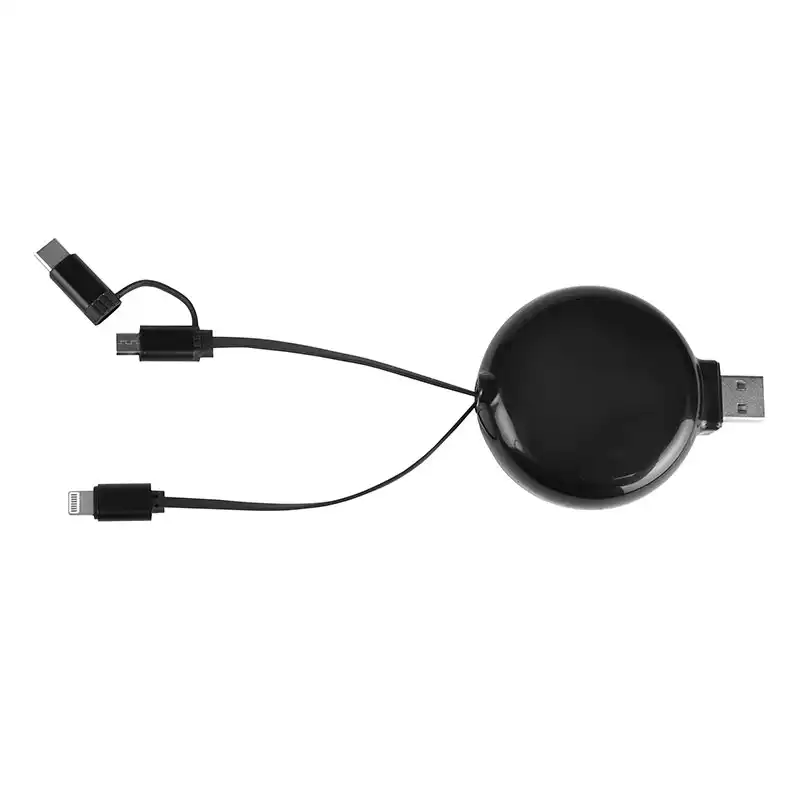 ໂຊລູຊັ່ນ 3-in-1 ທີ່ຫຼາກຫຼາຍດ້ວຍຕົວເຊື່ອມຕໍ່ Lightning, Micro-USB, ແລະ USB-C ປະສົມປະສານຢູ່ໃນມ້ວນມ້ວນດຽວທີ່ສາມາດຖອດໄດ້ເພື່ອຄວາມເຂົ້າກັນໄດ້ສູງສຸດ.